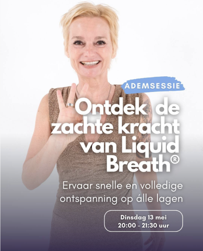 🔹 De zachte kracht van Liquid Breath®. Een methode voorbij adem’werk’. Ervaar diepe ontspanning via je uitademing, eerst in een zittende en daarna in een heerlijke liggende ademsessie.